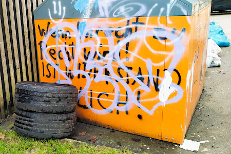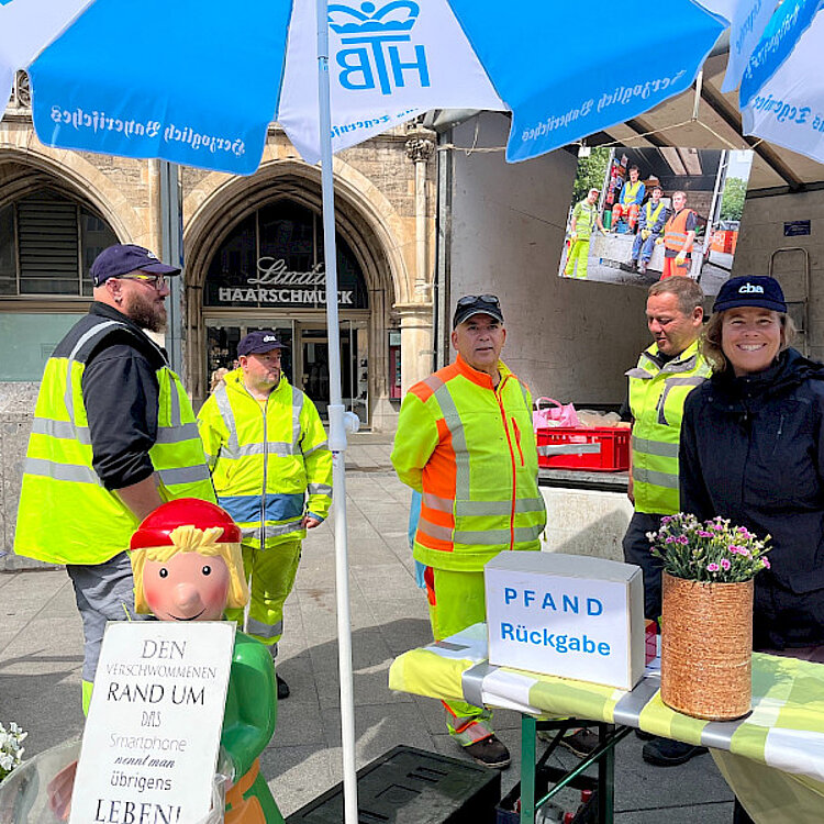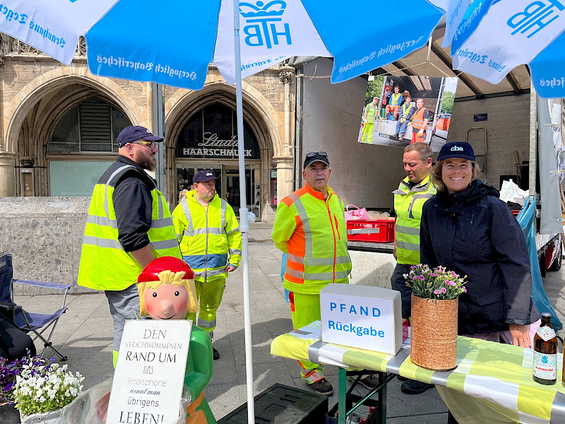 Die Kolleginnen und Kollegen gaben Interessierten Auskunft über ihre tägliche Arbeit. Hierfür brachten sie allerlei Fundstücke mit, die sie auf ihren Touren an Containerplätzen aufgesammelt haben.